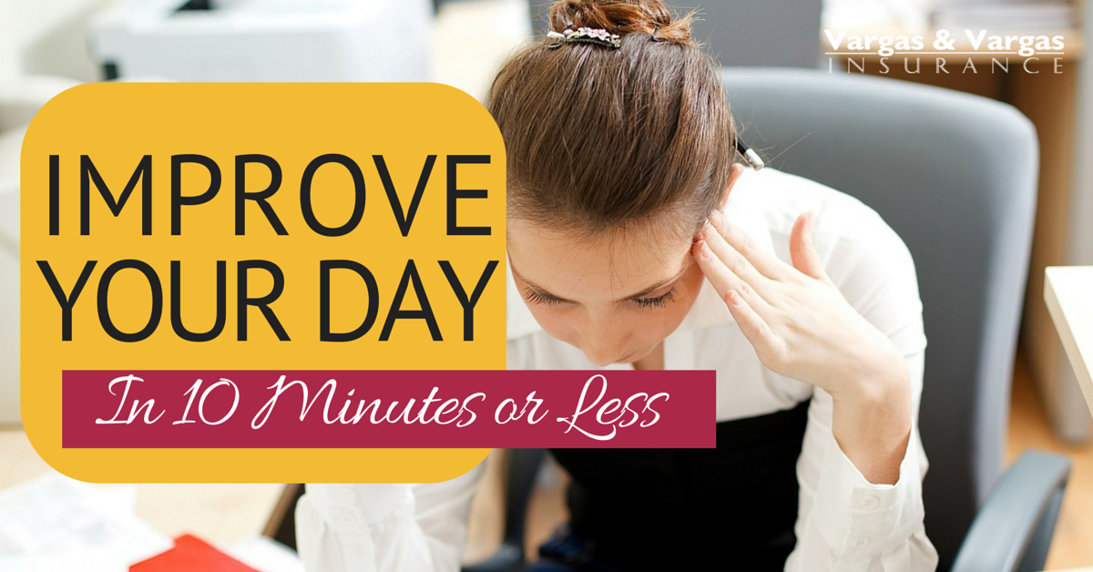 In today’s world, everyone is busy. Would you be able to take 10 minutes out of your busy schedule in order to improve your day? That’s less than 1% of your day! Next time you’ve got a free moment (whether it’s first thing in the morning, between tasks at work, or before you go to bed) try one of the following activities and find something that works for you and your routine: