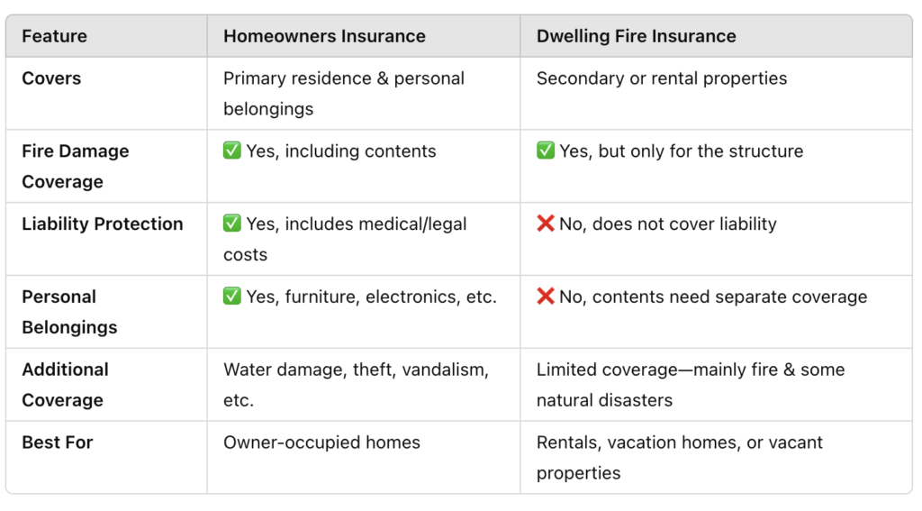 In this guide, we’ll break down the key differences between homeowners insurance and dwelling fire insurance, so you can ensure your properties are properly protected.