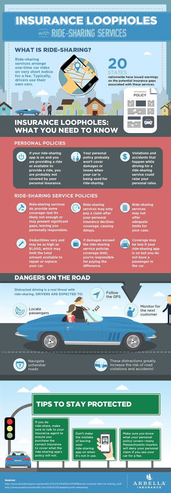 An infographic provided by our friends at Arbella Insurance shows just a few of the insurance loopholes that you may encounter if you drive for a ridesharing company: