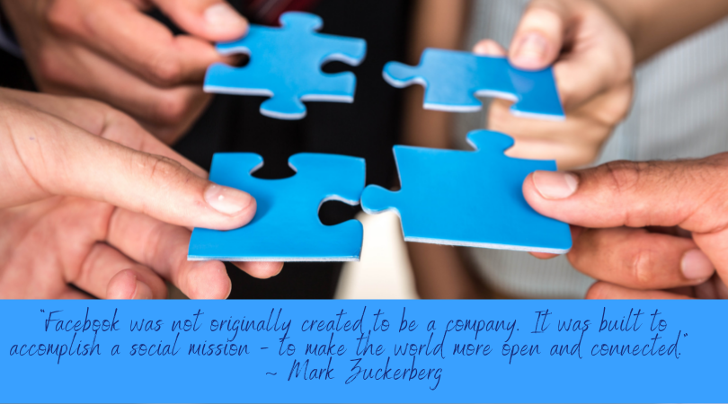 “Facebook was not originally created to be a company. It was built to accomplish a social mission – to make the world more open and connected.” ~ Mark Zuckerberg