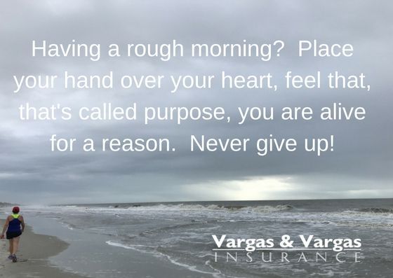 Having a rough morning? Place your hand over your heart. Feel that? That’s called purpose; you are alive for a reason. Never give up!